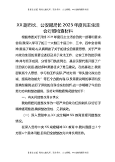 XX副市长、公安局局长2025年度民主生活会对照检查材料.docx