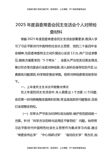 2025年度县委常委会民主生活会个人对照检查材料.docx