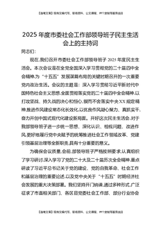 2025年度市委社会工作部领导班子民主生活会上的主持词.docx