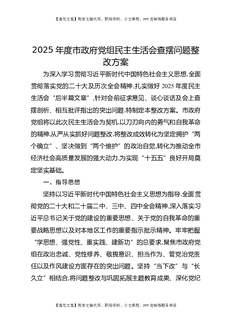 2025年度市政府党组民主生活会查摆问题整改方案.docx