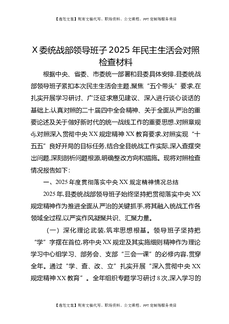 X委统战部领导班子2025年民主生活会对照检查材料.docx