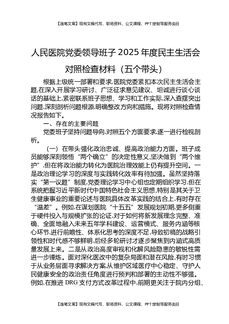人民医院党委领导班子2025年度民主生活会对照检查材料(五个带头).docx