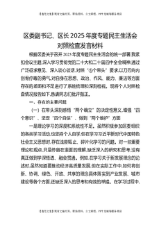 区委副书记、区长2025年度专题民主生活会对照检查发言材料.docx