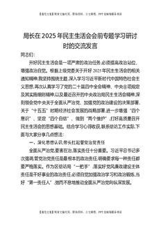 局长在2025年民主生活会会前专题学习研讨时的交流发言.docx