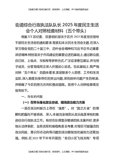 街道综合行政执法队队长2025年度民主生活会个人对照检查材料(五个带头).docx