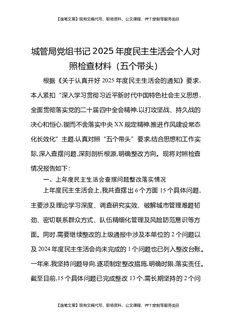 城管局党组书记2025年度民主生活会个人对照检查材料(五个带头).docx