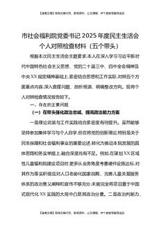 市社会福利院党委书记2025年度民主生活会个人对照检查材料(五个带头).docx