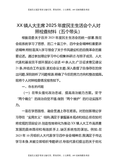 XX镇人大主席2025年度民主生活会个人对照检查材料(五个带头).docx