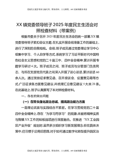 XX镇党委领导班子2025年度民主生活会对照检查材料(带案例).docx