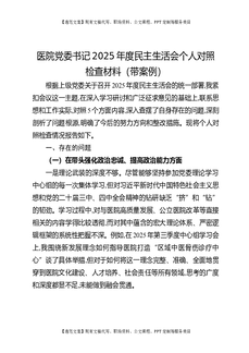 医院党委书记2025年度民主生活会个人对照检查材料(带案例).docx