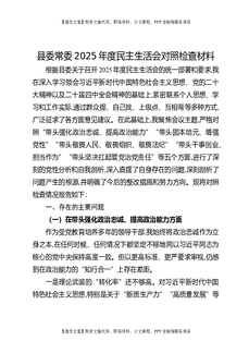 某县委领导班子2025年度民主生活会对照检查材料.docx