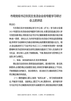 市局党组书记在民主生活会会前专题学习研讨会上的讲话.docx