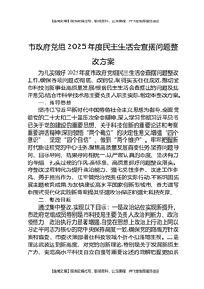 市政府党组2025年度民主生活会查摆问题整改方案.docx