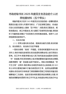 市政府秘书长2025年度民主生活会的个人对照检查材料(五个带头).docx