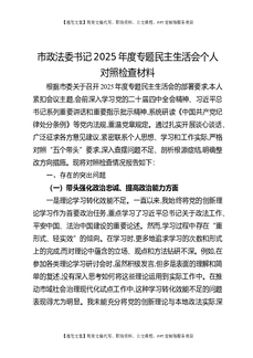 市政法委书记2025年度专题民主生活会个人对照检查材料.docx