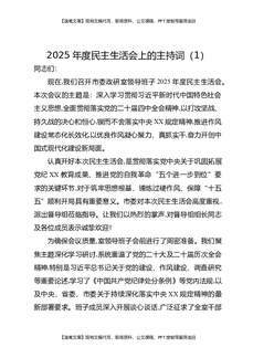 2025年度民主生活会上的主持词(1).docx