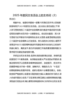 2025年度民主生活会上的主持词(2).docx