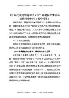 XX县司法局领导班子2025年度民主生活会对照检查材料(五个带头).docx