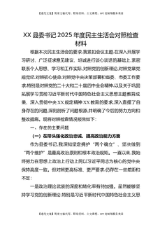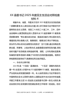 XX县委书记2025年度民主生活会对照检查材料4.docx