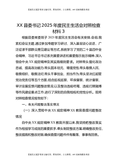 XX县委书记2025年度民主生活会对照检查材料3.docx