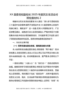 XX县委党校副校长2025年度民主生活会对照检查材料2.docx