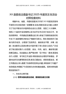 XX县委政法委副书记2025年度民主生活会对照检查材料.docx