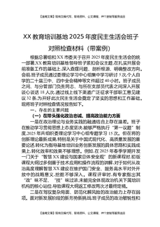 XX教育培训基地2025年度民主生活会班子对照检查材料(带案例).docx