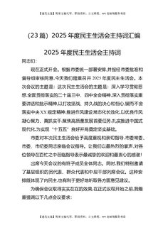 (23篇)2025年度民主生活会主持词汇编.docx