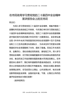 在市民政局学习贯彻党的二十届四中全会精神宣讲报告会上的主持词.docx