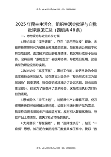 2025年民主生活会、组织生活会批评与自我批评意见汇总(四组共48条).docx