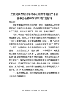 工信局长在理论学习中心组关于党的二十届四中全会精神学习研讨发言材料.docx