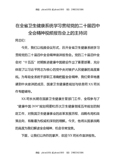 在全省卫生健康系统学习贯彻党的二十届四中全会精神视频报告会上的主持词.docx
