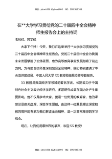 在大学学习贯彻党的二十届四中全会精神师生报告会上的主持词.docx