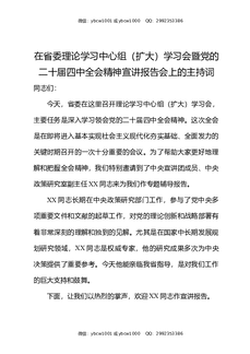 在省委理论学习中心组扩大学习会暨党的二十届四中全会精神宣讲报告会上的主持词.docx