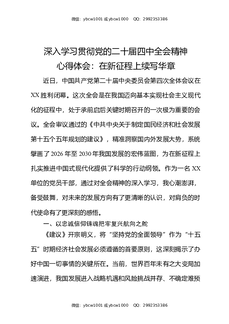 深入学习贯彻党的二十届四中全会精神心得体会:在新征程上续写华章.docx