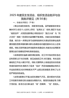 2025年度民主生活会、组织生活会批评与自我批评意见(50条).docx