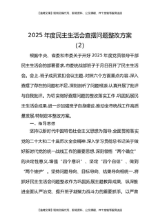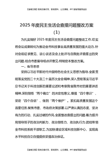2025年度民主生活会查摆问题整改方案(2).docx