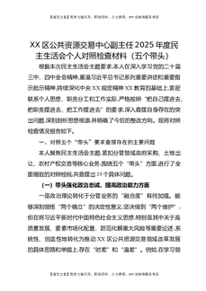 XX区公共资源交易中心副主任2025年度民主生活会个人对照检查材料(五个带头).docx