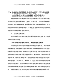 XX市道路运输管理局领导班子2025年度民主生活会对照检查材料(五个带头).docx