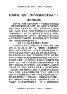 区委常委、副区长2025年度民主生活会个人对照检查材料.docx