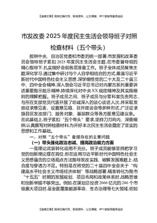 市发改委2025年度民主生活会领导班子对照检查材料(五个带头).docx