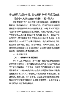 市检察院党组副书记、副检察长2025年度民主生活会个人对照检查剖析材料(五个带头).docx
