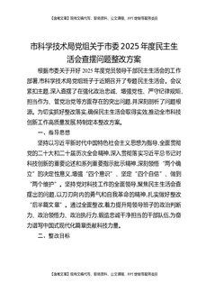 市科学技术局党组关于市委2025年度民主生活会查摆问题整改方案.docx