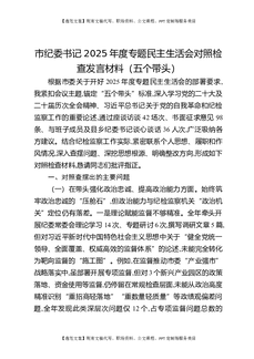 市纪委书记2025年度专题民主生活会对照检查发言材料(五个带头).docx