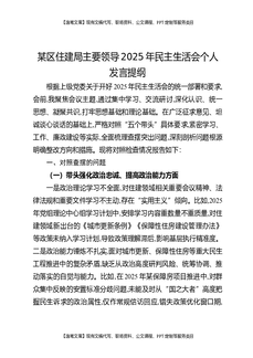 某区住建局主要领导2025年民主生活会个人发言提纲.docx
