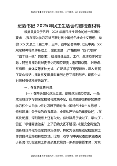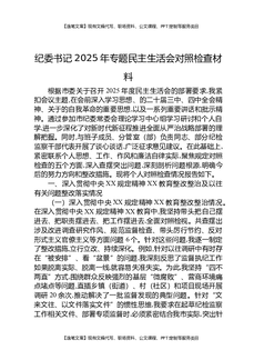 纪委书记2025年专题民主生活会对照检查材料.docx