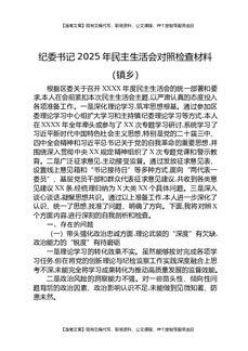 纪委书记2025年民主生活会对照检查材料(镇乡).docx