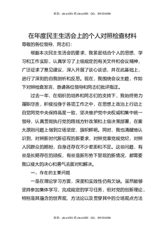 在年度民主生活会上的个人对照检查材料.docx