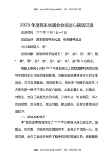 2025年度民主生活会会前谈心谈话记录.docx