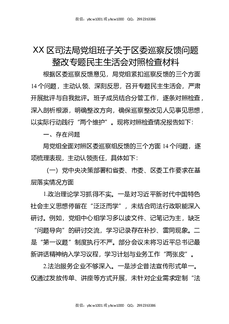 XX区司法局党组班子关于区委巡察反馈问题整改专题民主生活会对照检查材料.docx